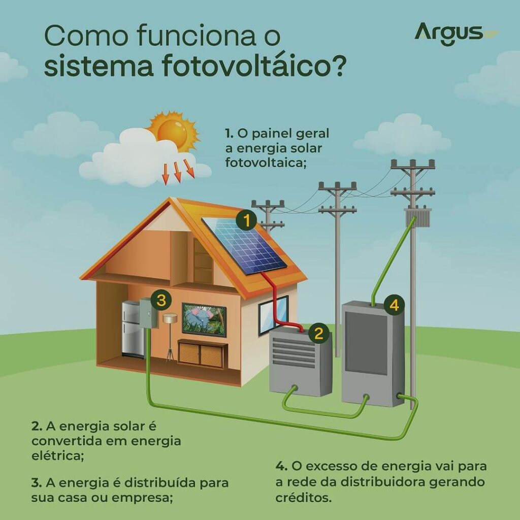 O sistema de energia fotovoltaica produz energia limpa e renovável, além de valorizar a sua propriedade, bem como reduzir os gastos com a conta de luz.